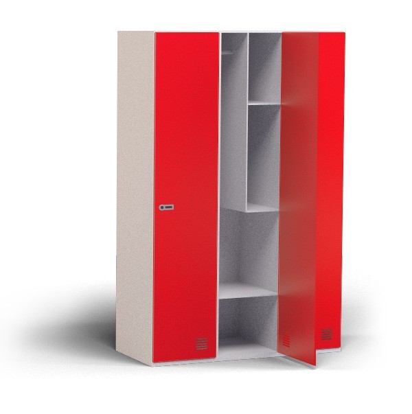 Within each cabinet has two shelves for storing eg. textbooks and school supplies, the side bar and two hooks for clothes,